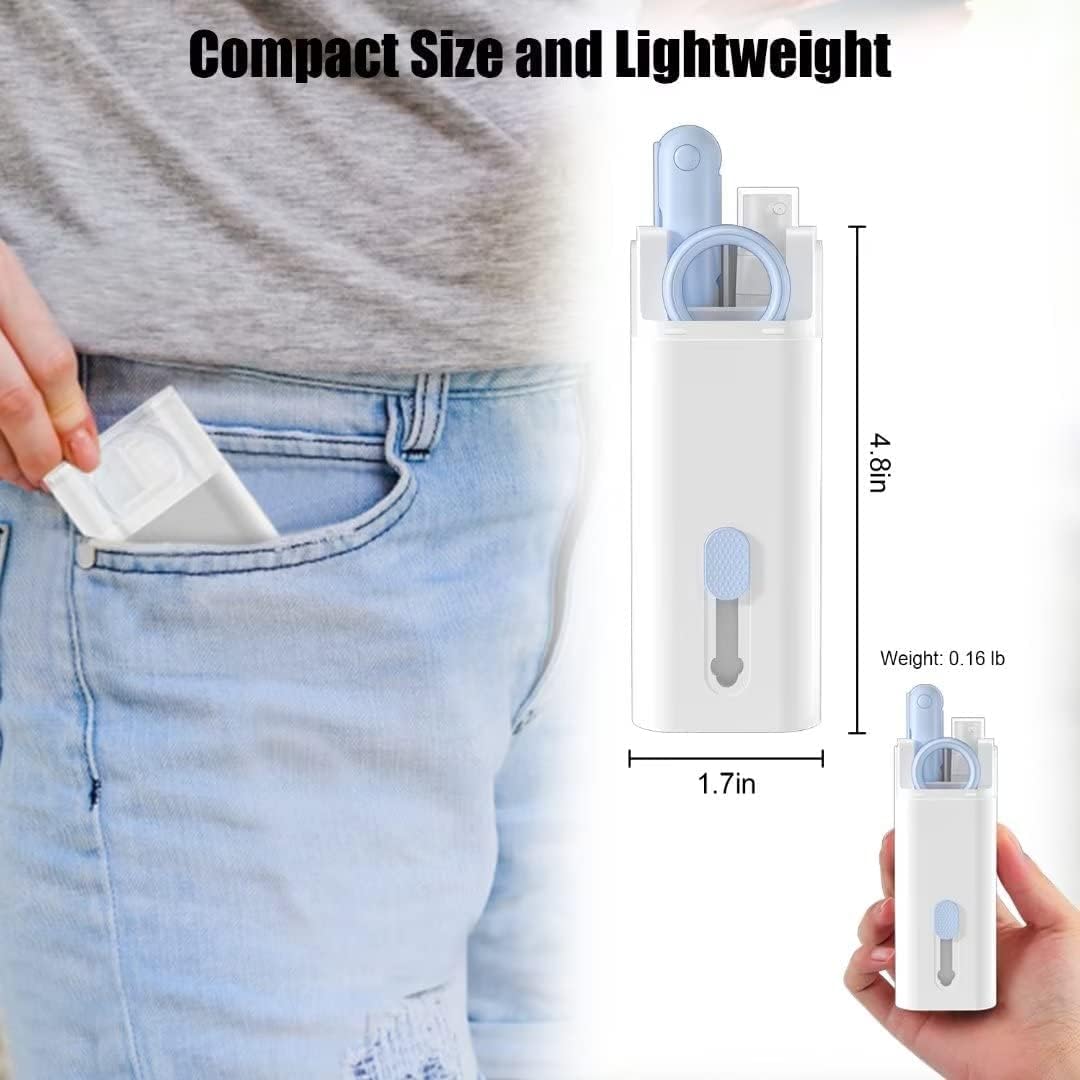 This comprehensive cleaning kit is designed to keep your digital devices spotless. With its soft, non-scratch brushes and specialized tools, it's perfect for cleaning Bluetooth earbuds, headphones, smartphones, computers, tablets, cameras, and more. The kit includes a variety of cleaning heads to tackle different types of dirt and grime, ensuring your devices remain clean and functional.